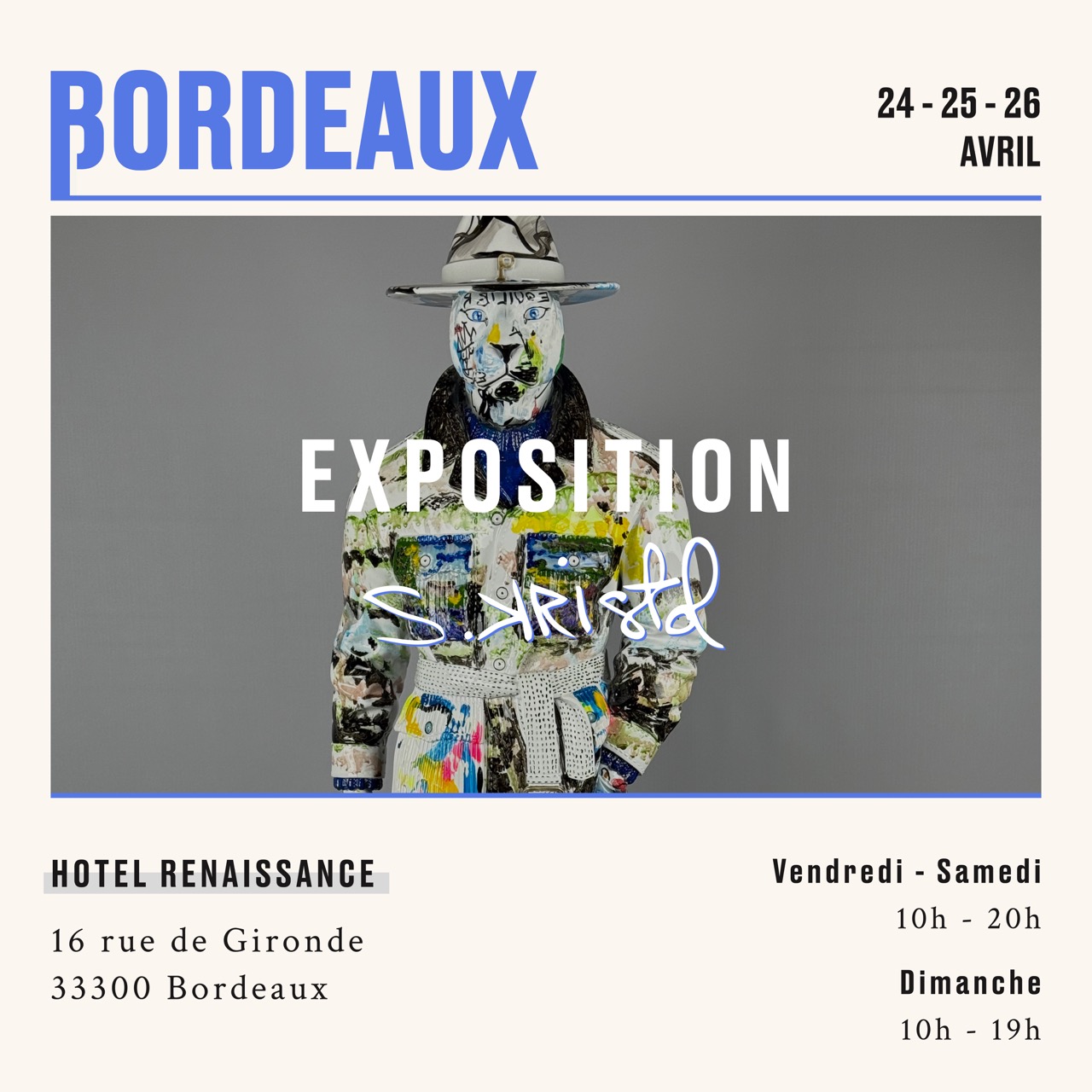 Vendredi & Samedi 10H-19H Dimanche 10H-18H